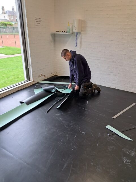 Derek Johnston, master tradesman said that it was an excellent job to teach first year apprentice Callum Robertson many of the skills he would require to become a time served floor layer. The job included vinyl’s and carpets, screeding, floor prep and the logistics of dealing with a live sporting environment.